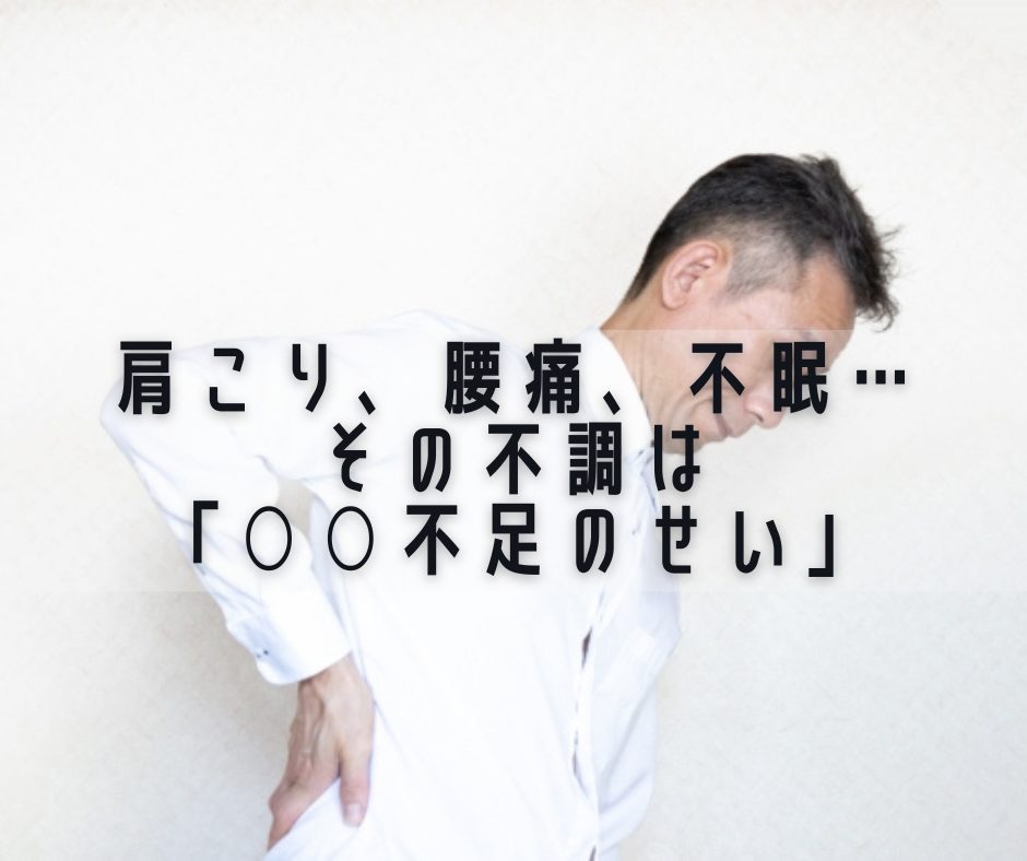 シリーズ「40代の肌トラブル」もあっという間でした。今回からは40代の体の不調についてです。タイトルにある「肩こり」「腰痛」「不眠」…仕事を頑張る40代が悩みがちの不調ですが、それは「○○の不足」と言われています。
